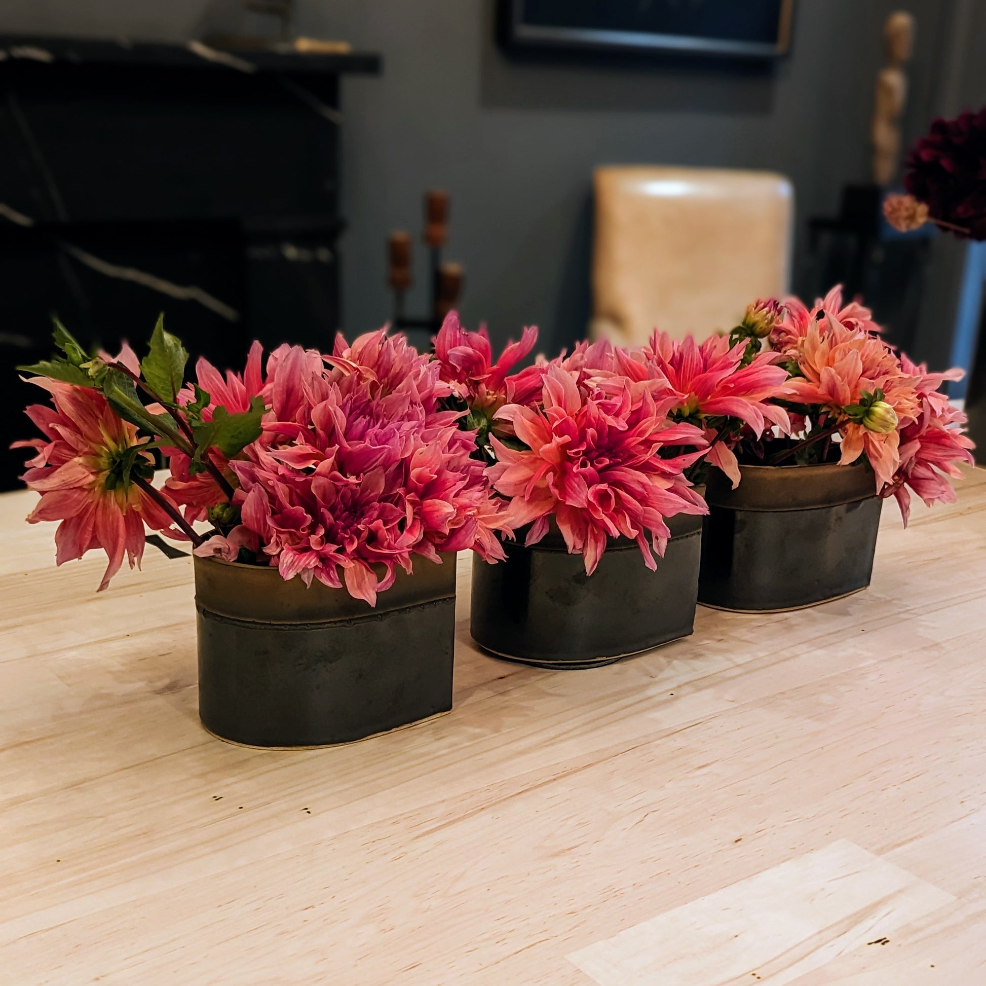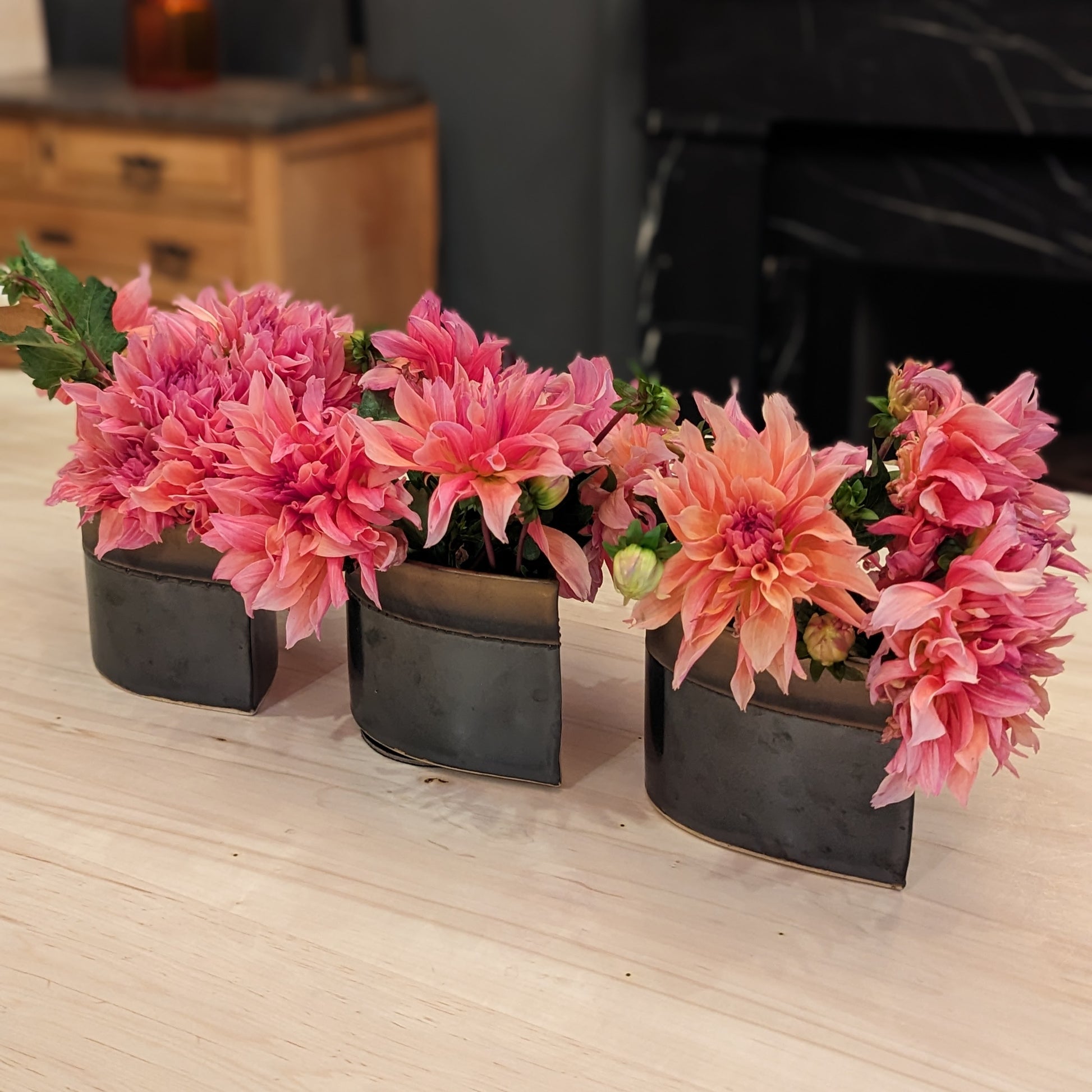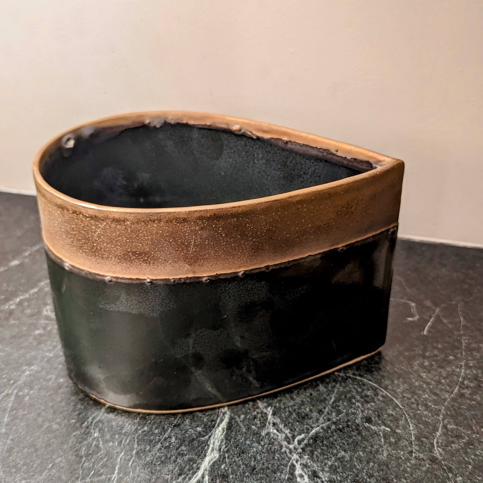 Happy Tears vases are created using slabs of stoneware clay formed and thinned without the use of a mechanical roller or machinery. The clay is stretched, cut, trimmed and fastened entirely by hand.